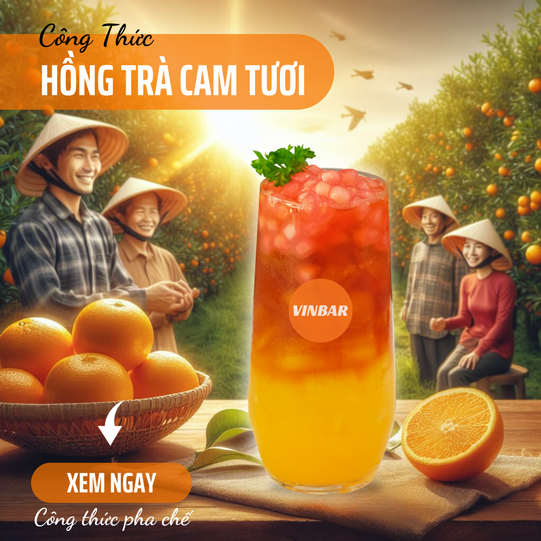 Bước 3: Hồng trà cam tươi ly 500ml đá