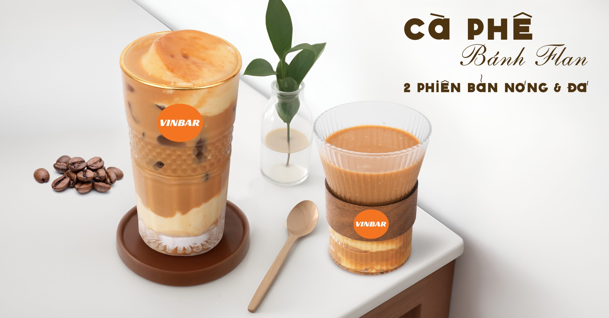 - Thêm 1 cái bánh flan lên trên là hoàn thành. Khi uống khuấy đều lên uống.