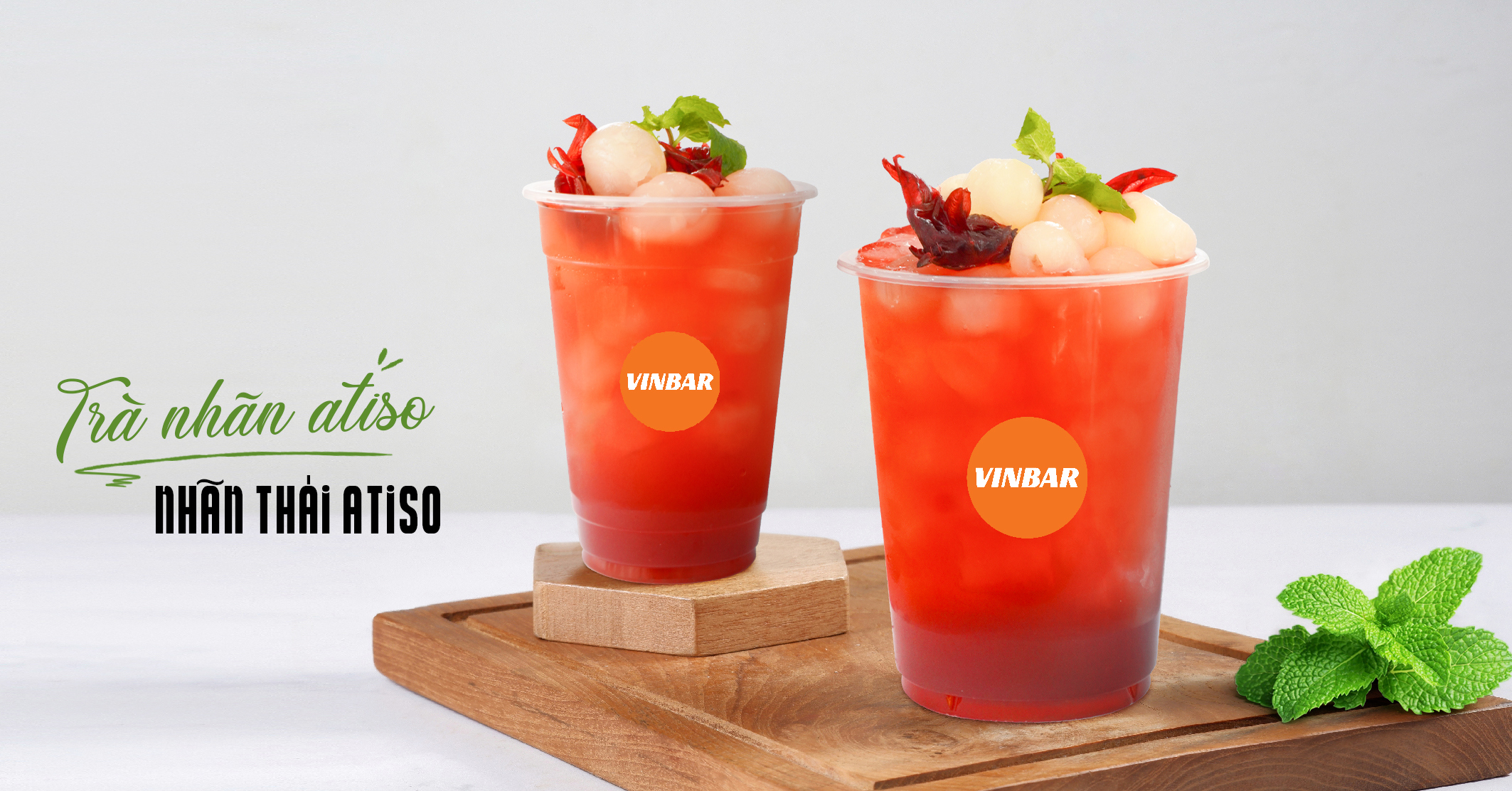 - Định lượng ly 350ml: 80ml nước trà xanh + 35ml nước ngâm nhãn + 7ml nước đường + 1.5ml nước tắc + 3.5ml siro Long nhãn + 10ml mứt Atiso. Khuấy đều, cho đá tới vạch ly. Thêm 5 trái nhãn & 1 bông Atiso trang trí là hoàn thành.
