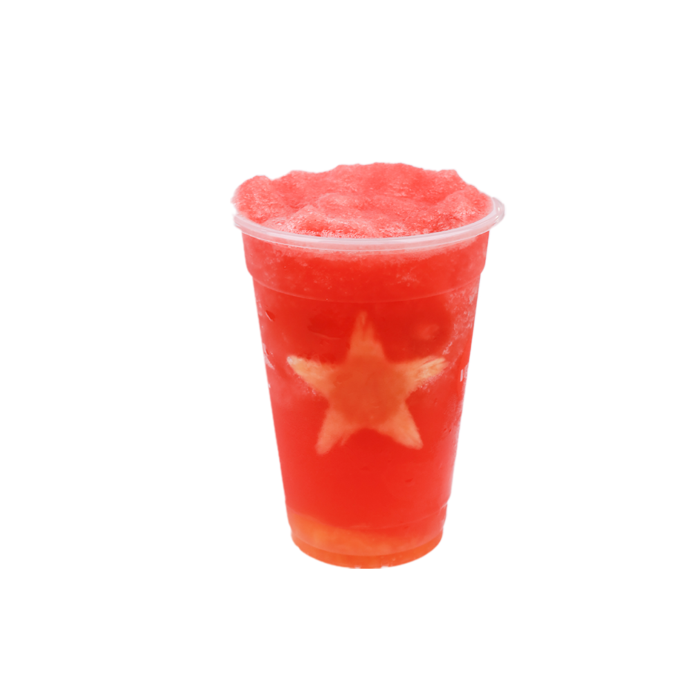 - Lưu ý để có hình ngôi sao đẹp: Cắt lát thơm thật mỏng, ép lát thơm ôm sát thành ly, rót phần dưa hấu đá xay vào thành ly đối diện lát thơm.
