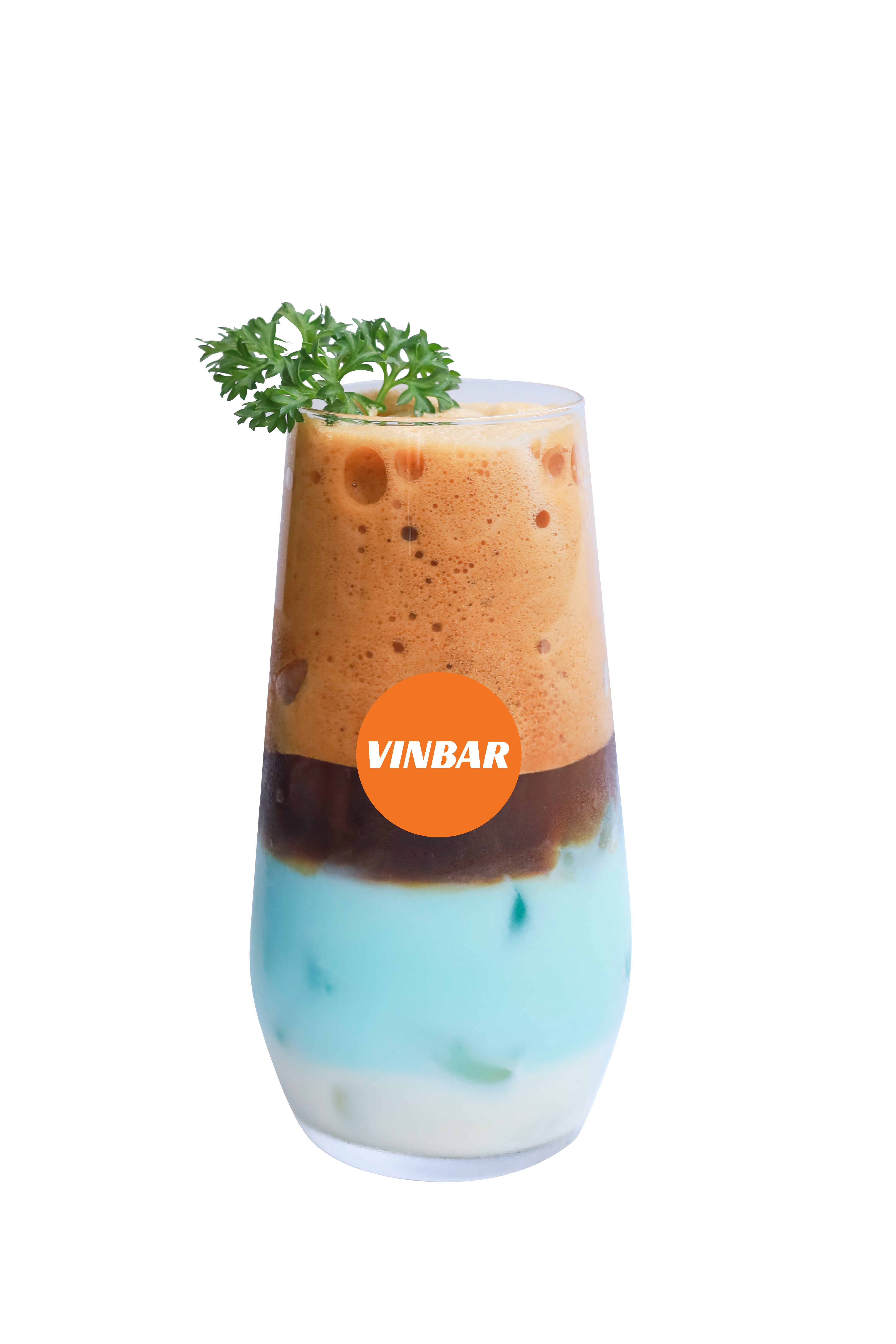 - Tầng 2: Tiếp theo, đong 30ml sữa tươi không đường + 10ml siro Blue Curacao, khuấy đều rót vào ly. Thêm đá cho đầy ly.
