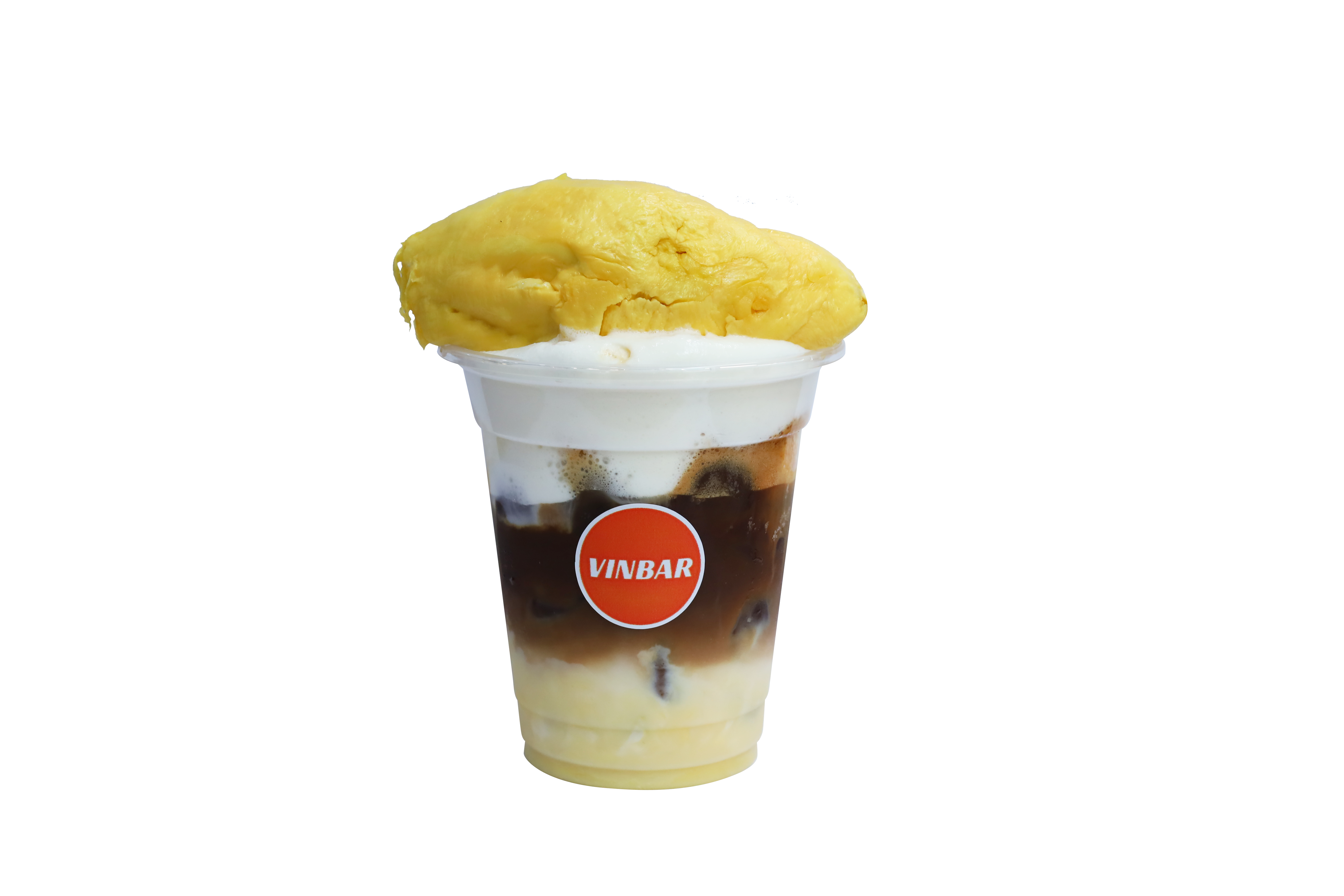 - Tầng 1: Đong 20ml sữa đặc + 30ml sốt sầu riêng, khuấy đều, cho đá vào 1/2 ly.
