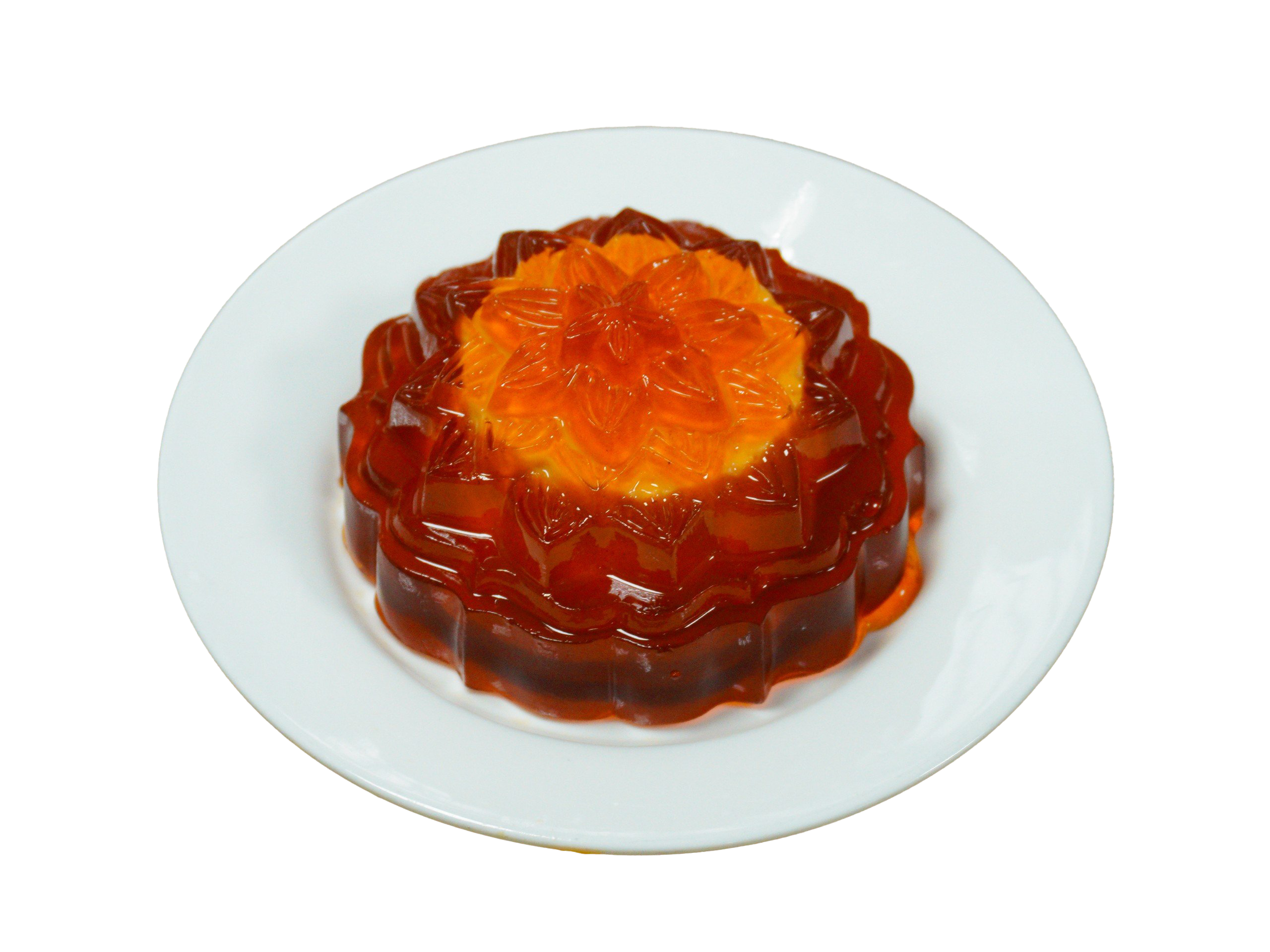 Bước 8: Thạch trà thái đỏ bên ngoài: Dùng 250ml nước cốt trà thái đỏ + 850ml nước thạch rau câu ở bước 5, khuấy đều và đổ vào khuôn bánh trung thu (kích thước: 9cmx9cmx4.5cm), mỗi khuôn dùng 110mml nước thạch. Cho phần thạch trà sữa ở bước 7 vào giữa khuôn. Thu được 10 phần.