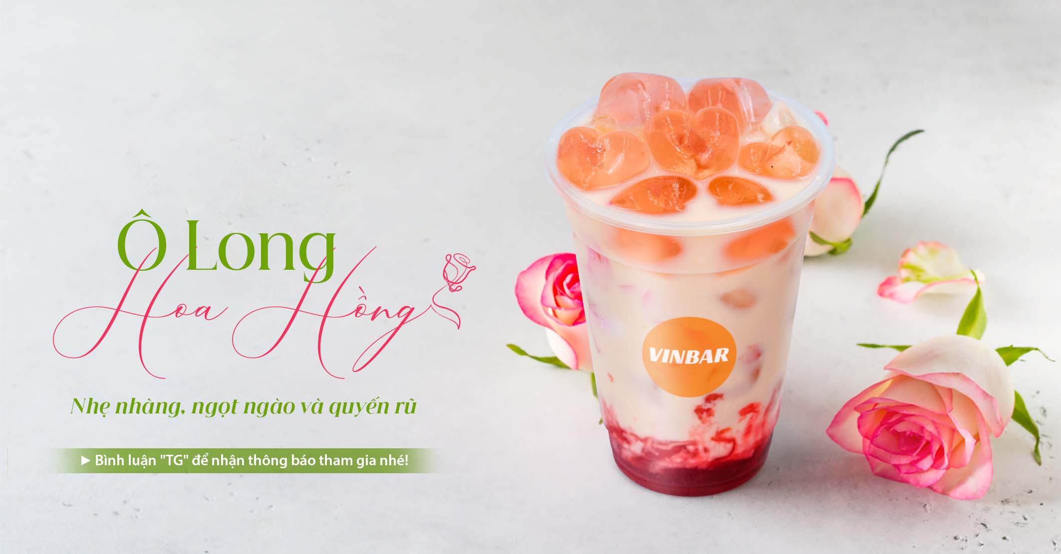 - Bước 2: Rót vào ly 150ml trà sữa Ô long không đường, sau đó thêm 5 viên thạch hoa hồng lên trên là hoàn thành.