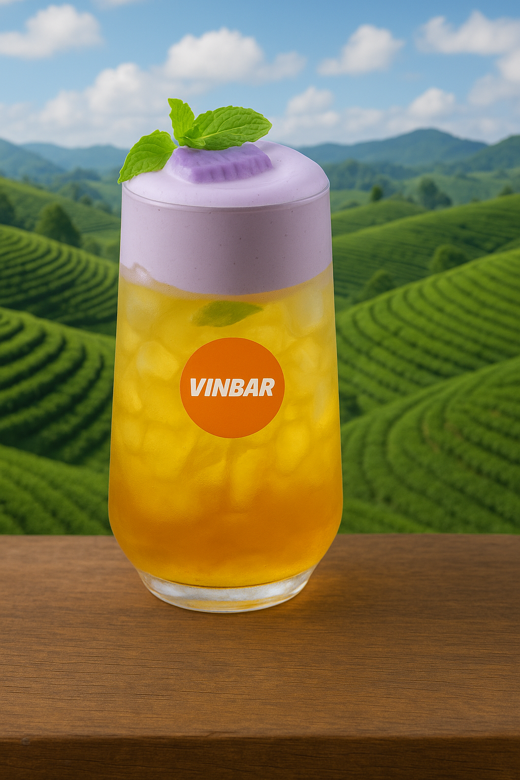 - Bước 3: Rót 110ml kem môn lên trên, lắc đều và thưởng thức.