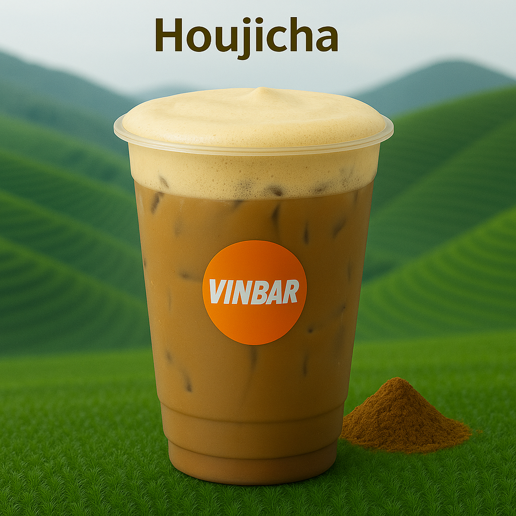- Định lượng ly 500ml: 5ml bột trà rang Houjicha (1.3k) + 100ml nước sôi + 20ml nước đường (424đ) + 50g đá bi làm nguội + 110ml kem rang (3.1k) + ly, muỗng, ống hút (1.3k) = 6.2k