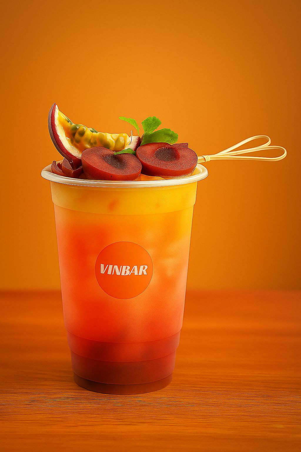 - Bước 1: Cho vào ly 150ml nước cốt trà xanh + 10ml nước cốt chanh dây + 20ml nước đường + 30ml nước mận ngâm + 30ml sốt mận. Khuấy đều cho đá đầy ly.