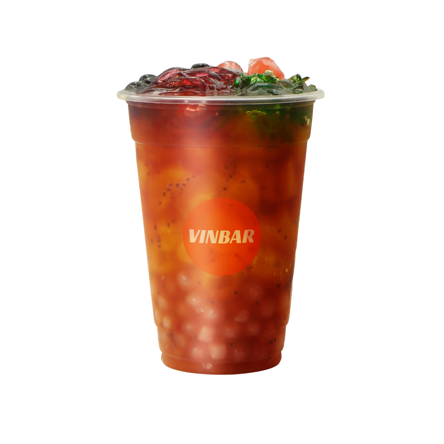 Bước 2: Cho đá đến vạch ly đầu tiên, thêm topping lên trên là hoàn thành.