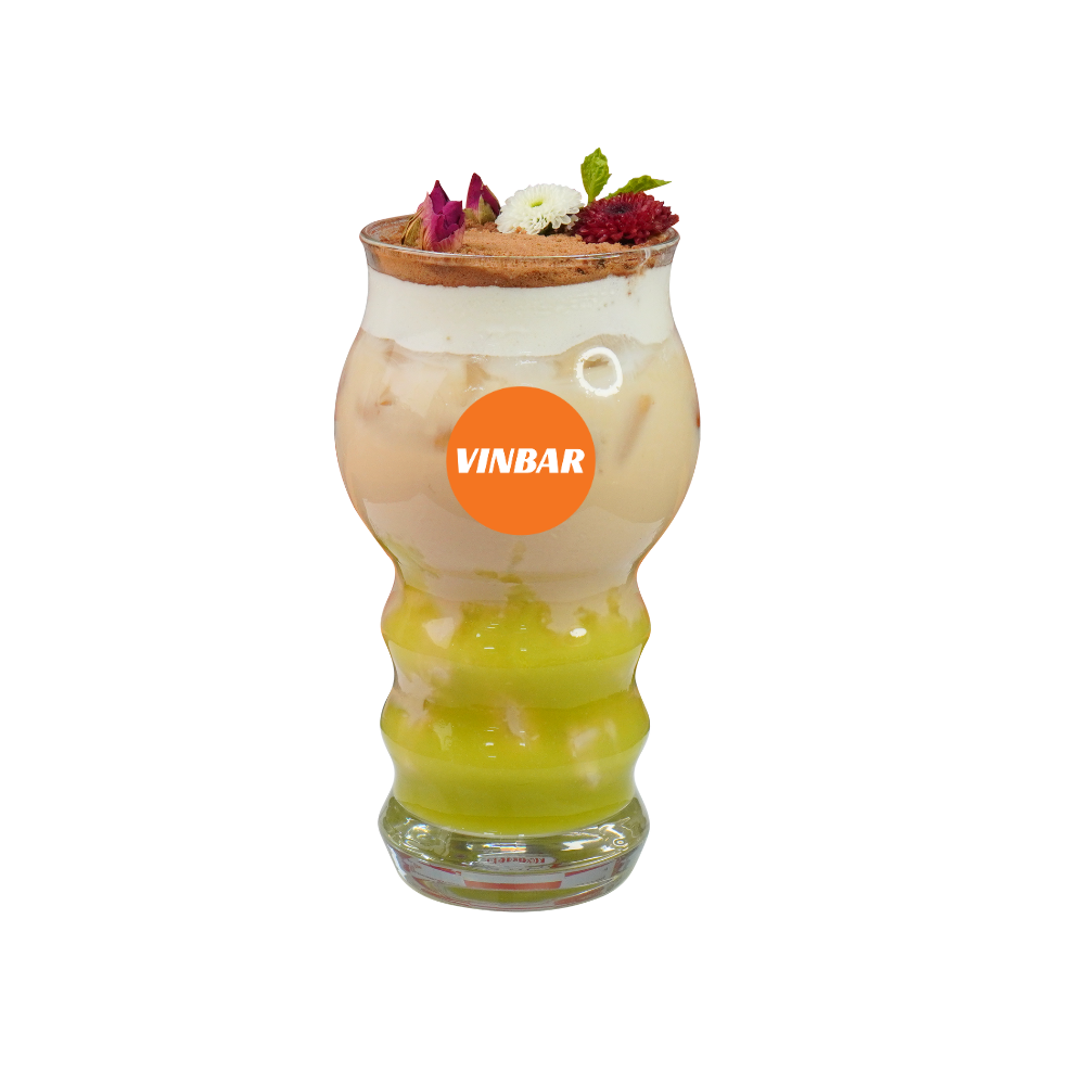 - Tầng 1: Cho 50ml sốt bơ (1.2k) + 20ml nước đường (356đ) vào đáy ly, khuấy đều. Cho đá vào đầy ly.
